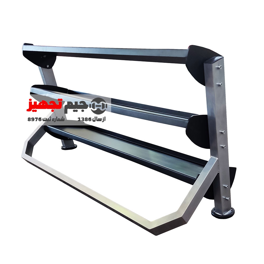 رک دمبل سه طبقه مناسب تمام باشگاه های بدنسازی و جزیی از تجهیزات باشگاه بدنسازی است.